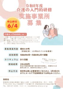 \ 令和8年度 介護の入門的研修 実施事業所の募集 /