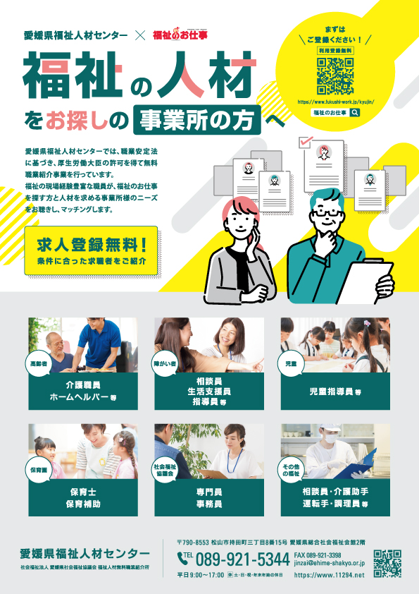 求人情報誌や『福祉のお仕事』HPへ掲載