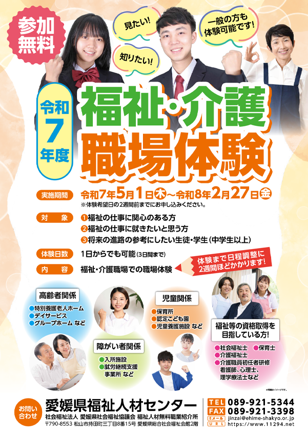 福祉の仕事に関心のある方、福祉の仕事に就きたいと思う方、将来の進路の参考にしたい学生さん(中学生以上)