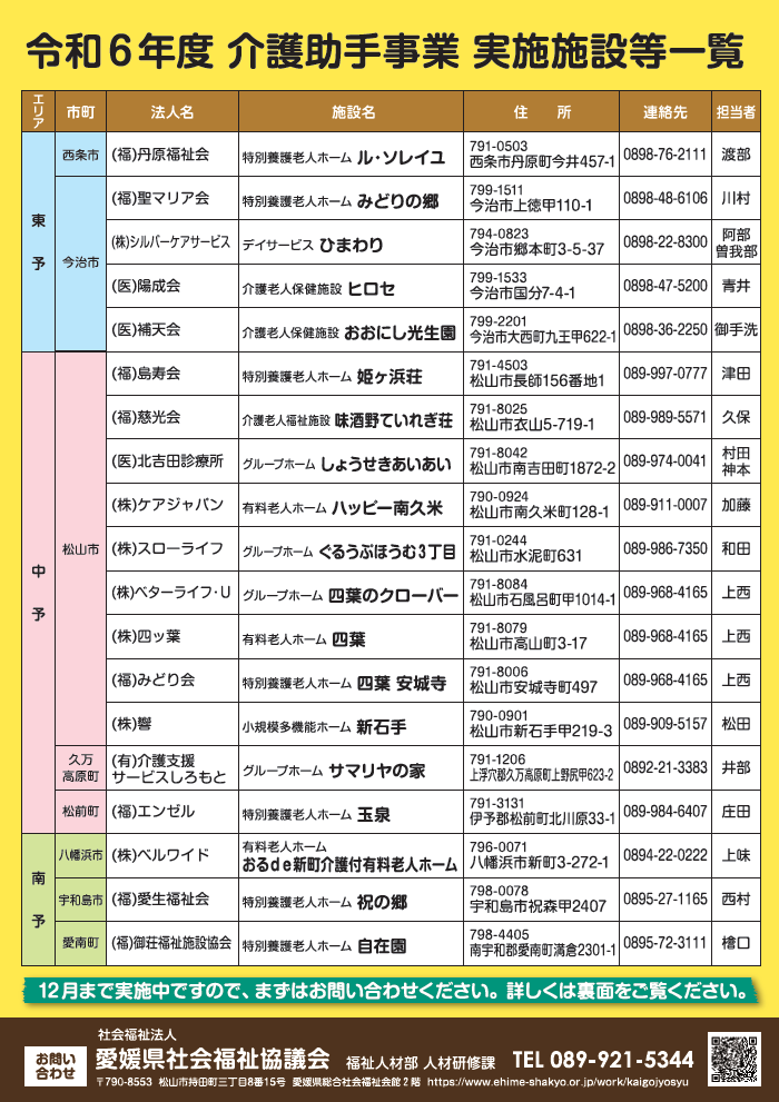 12 (福)エンゼル | 089-984-6407(沖浪・隼田) 特別養護老人ホーム玉泉(伊予郡松前町北川原33-1) |