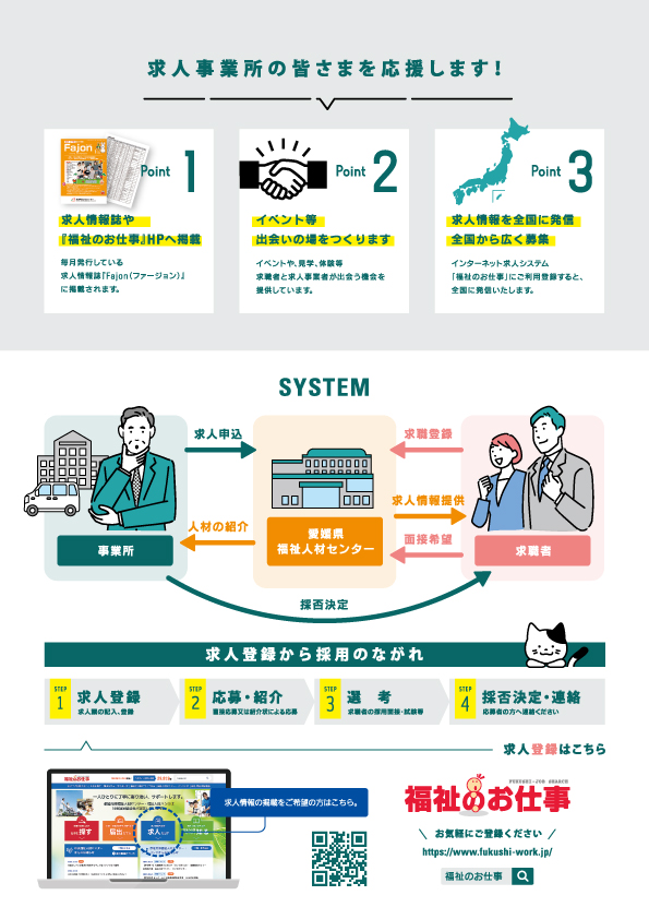 インターネット求人システム「福祉のお仕事」にご利用登録すると、全国に発信いたします。